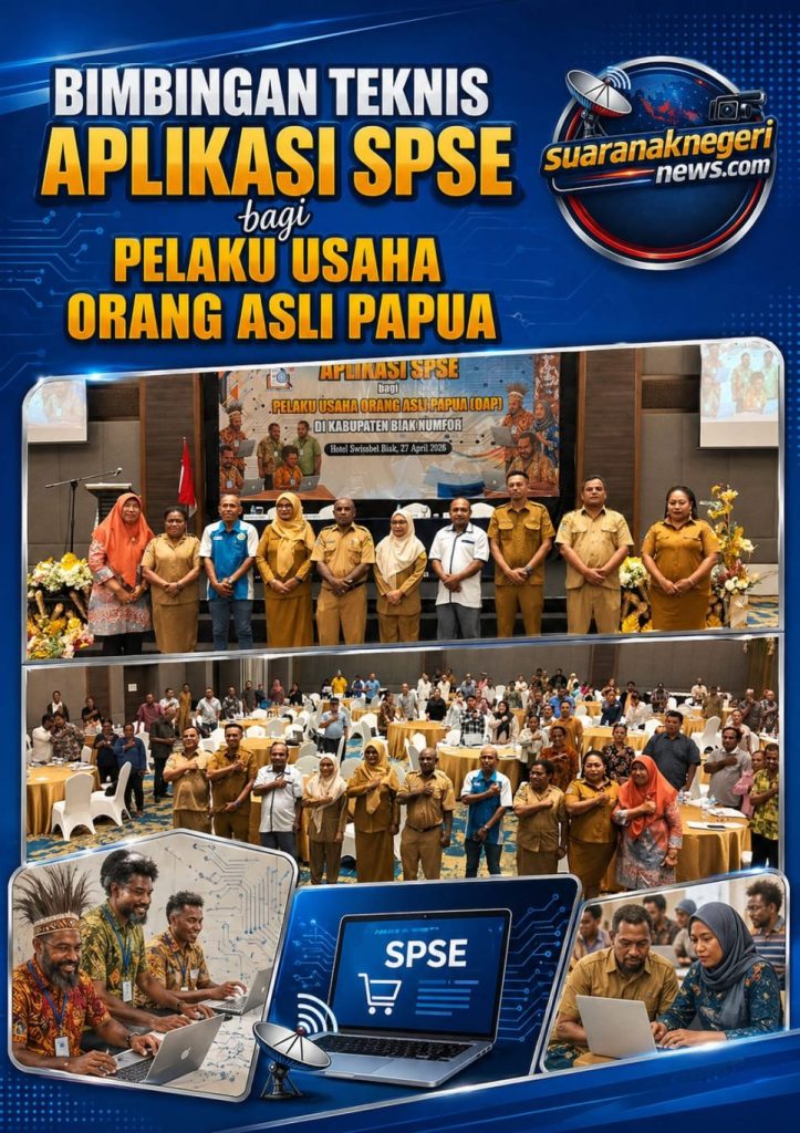 Namun, Senin pagi (27/4/2026), di Swiss-Belhotel Cendrawasih Biak, langkah kecil tapi bermakna diambil: Bimbingan Teknis (Bimtek) Aplikasi SPSE versi 4.5 dibuka secara resmi oleh Yubelinus Usiyor, Kepala Dinas Perindustrian dan Perdagangan Kabupaten Biak Numfor, mewakili Bupati Markus Oktovianus Mansnembra, S.H., M.M. Acara ini bukan sekadar pelatihan teknis, ia adalah upaya menyeimbangkan timbangan: memberi senjata digital kepada mereka yang selama ini hanya bisa menonton dari pinggir.