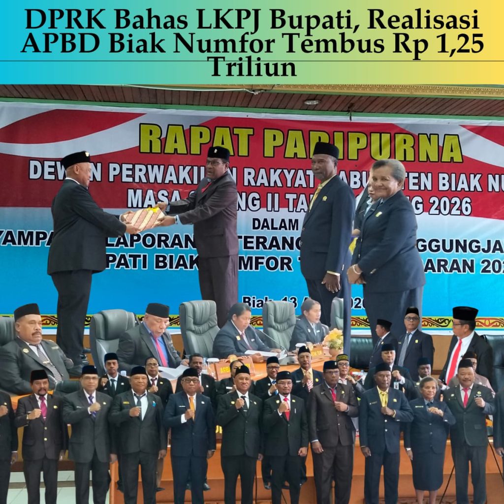 Hal ini mengemuka dalam Rapat Paripurna Dewan Perwakilan Rakyat Kabupaten (DPRK) Biak Numfor dalam rangka penyampaian Laporan Keterangan Pertanggungjawaban (LKPJ) Bupati Tahun Anggaran 2025 yang dipimpin Ketua DPRK, Daniel Rumanasen, Senin (13/4/2026).